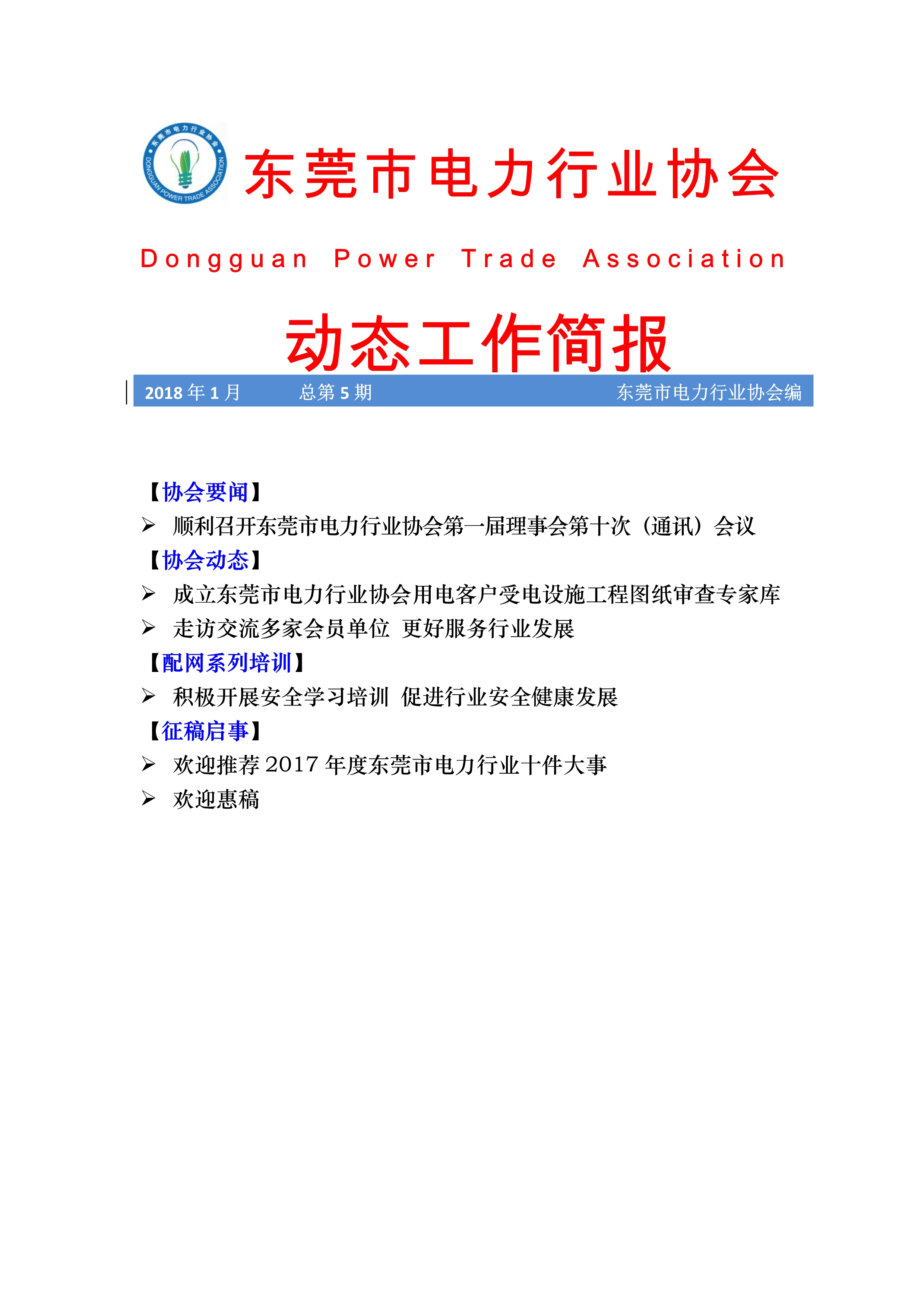 東莞市電力行業(yè)協(xié)會(huì)2018年(1月)動(dòng)態(tài)工作簡報(bào)